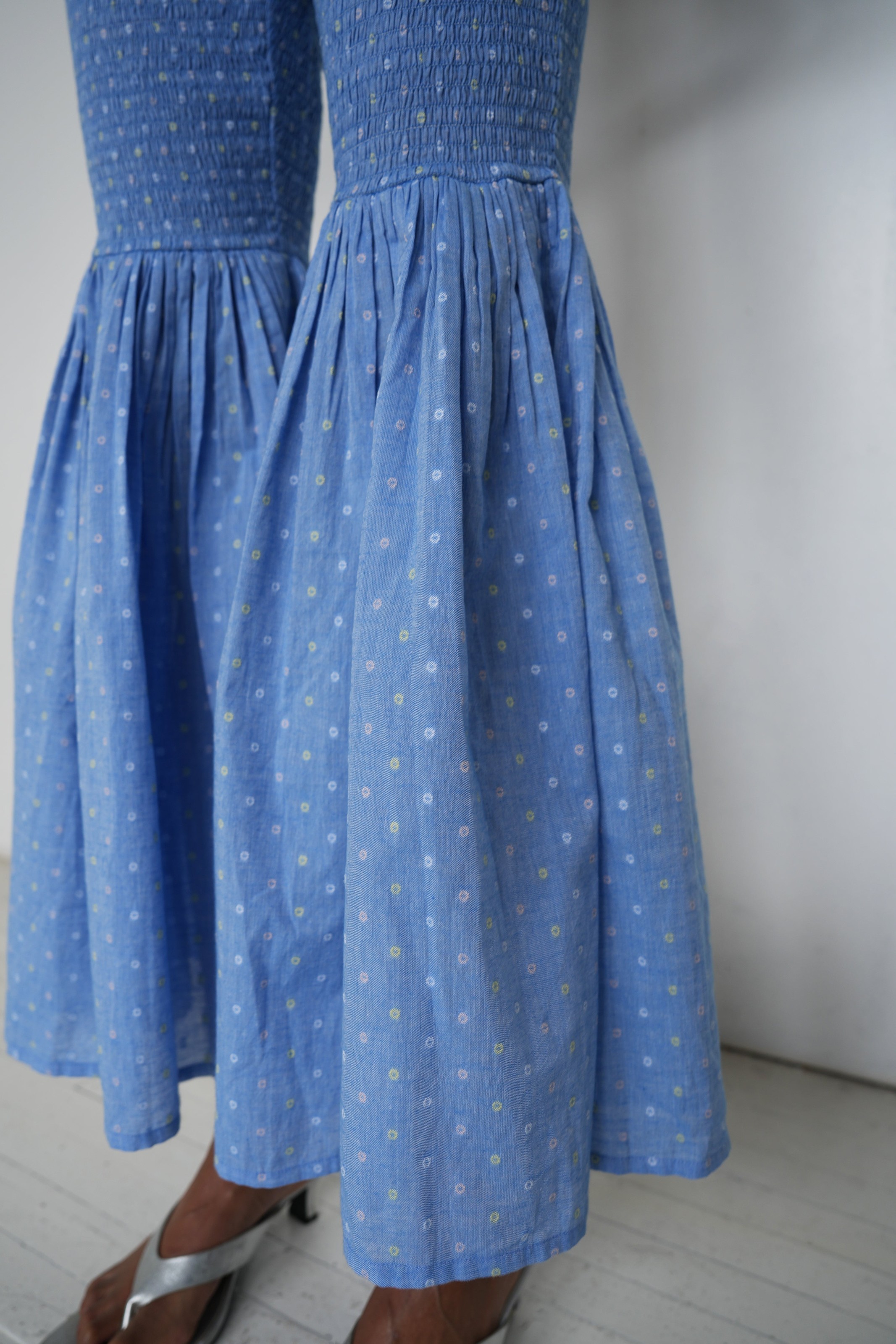 Hand or machine wash, delicate cycle only, cold water. We recommend hand washing and hang drying if possible to keep the smocking in tact. Do not tumble dry, dry flat.