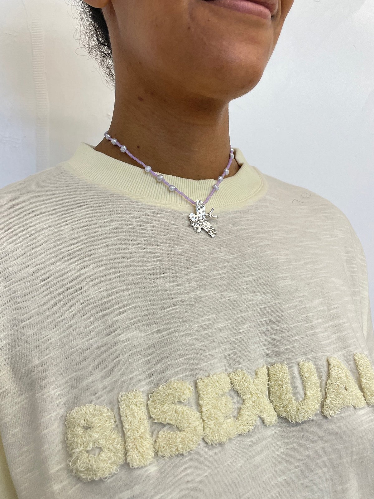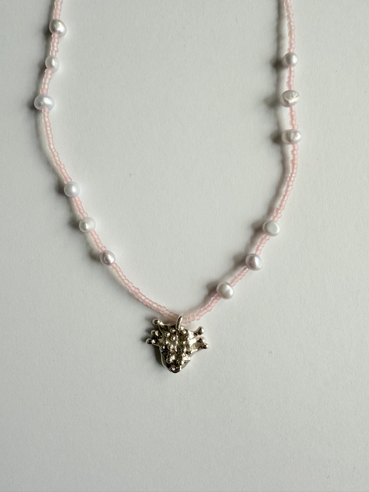 Gorgeous one-of-a-kind hand-beaded necklace with pearls, beads, and a pure sterling ladybug pendant. From our 'Mystic' runway show collab by Sahiba.