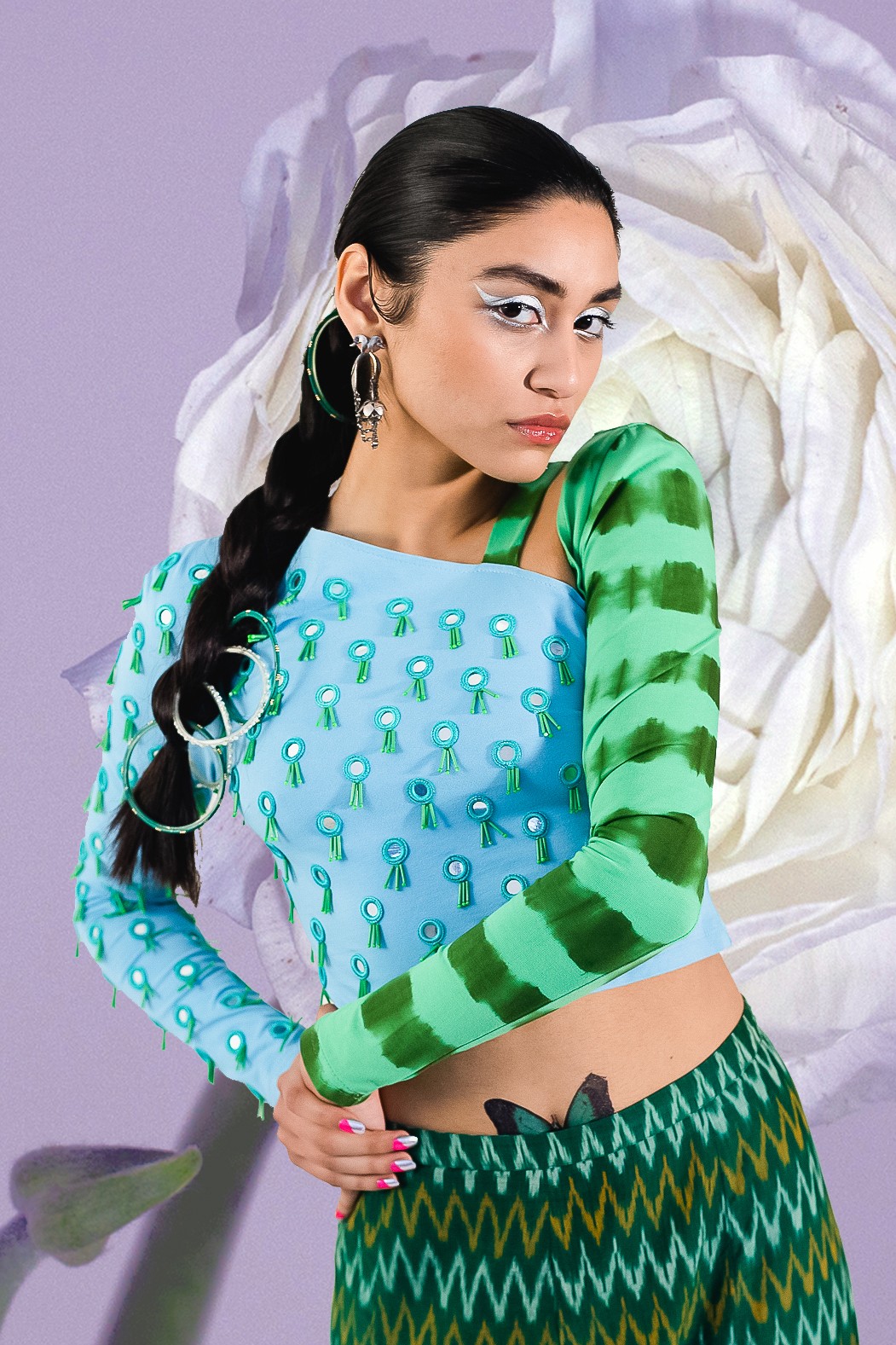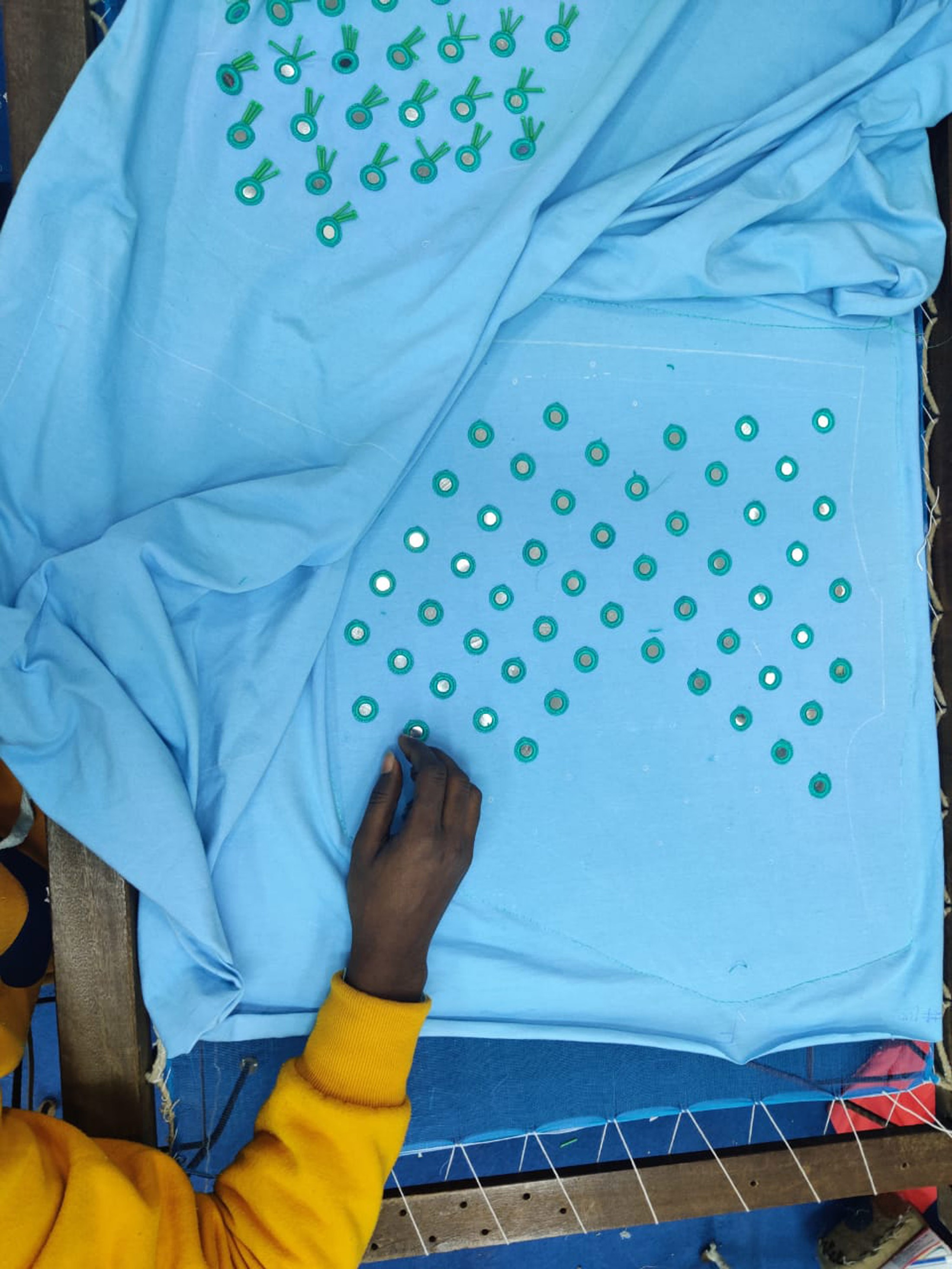 Mirror-work or shisha work is an embroidery technique that involves attaching glass or small pieces or mirrors or reflective material to cloth. It’s a very familiar part of Indian textile design today, most commonly found in the Northwestern states of Gujarat and Rajasthan. Typically, you’ll find shisha work on traditional kurtas or tunic yokes, and on decorative wall hangings and bedspreads. Beyond solely decorative use, many believe that mirror-work is an auspicious tool for warding off the evil eye, reflecting bad luck and evil spirits away from the wearer.